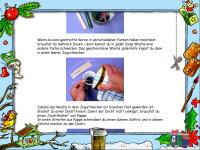 Die Kids besuchen Peter jeden Tag. Dabei suchen sie in seinem Bauwagen oder in seinem Garten nach versteckten Sternchen. Hinter jedem Sternchen verbirgt sich eine tolle Überraschung. Geschenkideen zum Selbstbasteln etwa wie Magnetfiguren für den Kühlschrank oder Blanko-Gutscheine für die Eltern. Wer gerne in die Rolle eines Weihnachtsbäckers schlüpft, findet geeignete Rezepte zum Nachmachen. Aber das Spielen kommt auch nicht zu kurz. Schnellballschlacht mit dem Schneemann oder Süßigkeiten fangen bringen viel Spaß. Für den Grips sorgen das Weihnachtsquiz oder Lexika-Einträge z.B. wie entsteht das Eis? Der Adventskalender Löwenzahn sorgt für Abwechslung. Jeden Tag entdecken die Kinder etwas anderes. Dabei steht vor allem die weihnachtliche Stimmung im Vordergrund, und nicht der Zeitvertreib am Computer. Denn neben den wenigen Spielen sind noch genügend Alternativen zum Basteln, Backen oder Experimentieren versteckt. So gelingt es Terzio, die Tradition der Adventszeit mit modernen Mitteln umzusetzen.